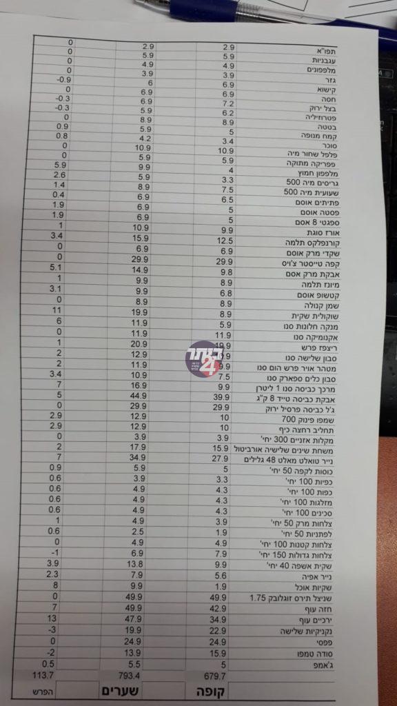 פרט נוסף: היו מוצרים שלגביהם היה חשוב שתראו את הפער הגדול במחיר בין הפירמות והמותג, ולכן ציינו ליד כל מוצר שזה ממותג שונה או סוג אחר.