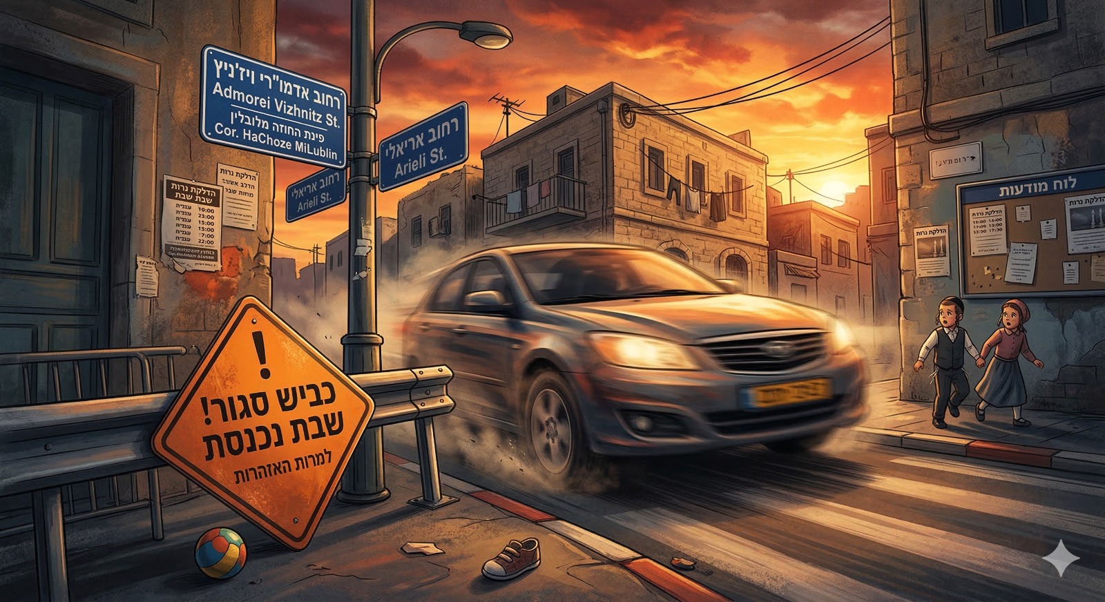 אם יש מי שבכל זאת נאלץ לנסוע ברגעים האחרונים, מחובתו לנסוע ביתר זהירות פי כמה וכמה. נסיעה במהירות גבוהה בתוך שכונות מגורים צפופות היא סכנת נפשות של ממש. הנס שאירע השבוע בצומת אדמו”רי ויז’ניץ וברחוב אריאלי הוא תזכורת לכך שאנו חייבים לעשות את ההשתדלות המקסימלית מצדנו.