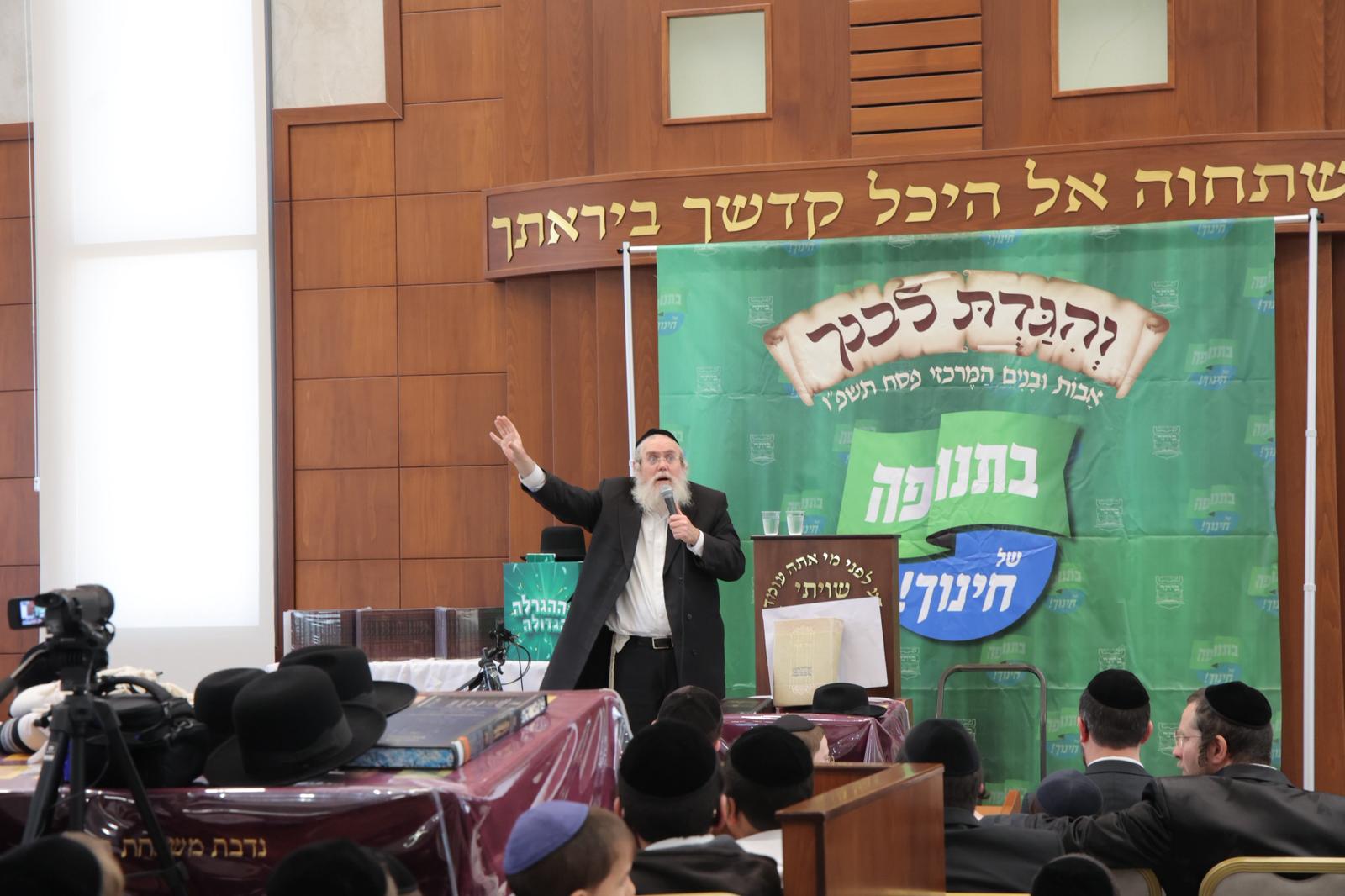 כמו כן התקיים כמיטב המסורת “אבות ובנים המרכזי” בסימן “והגדת לבנך”, בו השתתפו כ-1000 ילדים והוריהם שלמדו יחד מתוך שמחה והתרוממות רוח. בעקבות הביקוש בחג הסוכות, התקיימו בפסח שני מוקדים של אבות ובנים, בגבעה א’ ובגבעה ב’. לאחר הלימוד המשותף התקיימה שמחת חג ושיחות מרתקות מפי הרב שלמה מילר והרב ישראל מאיר שושן, לסיום התקיימו הגרלות על פרסים יקרי ערך.