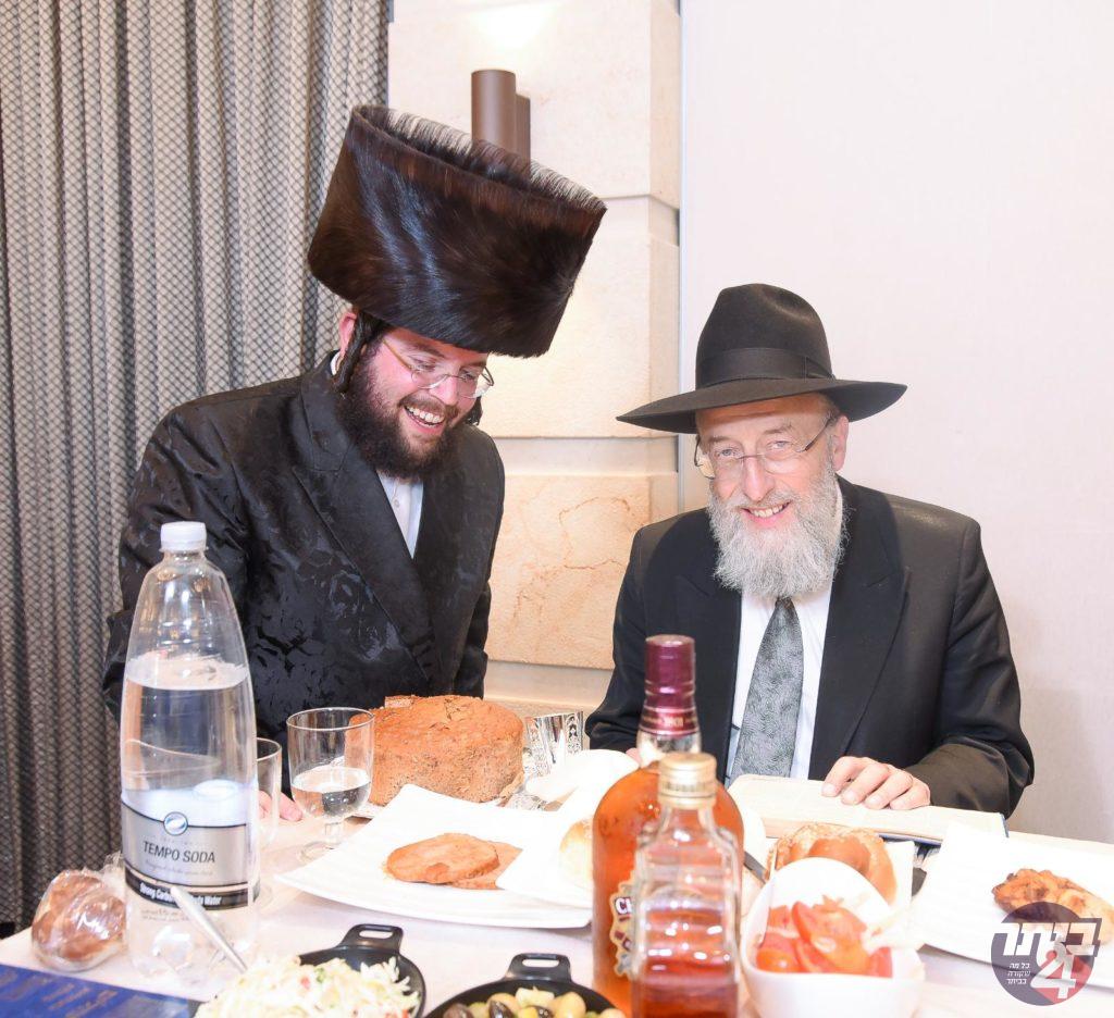 גאב”ד מלברון אוסטרליה הגר”ש קאהן שליט”א מראשי הדיינים בלשכת הפוסקים עם חבר הבדץ הגרא”ש שטיגליץ שליט”א בשמחה